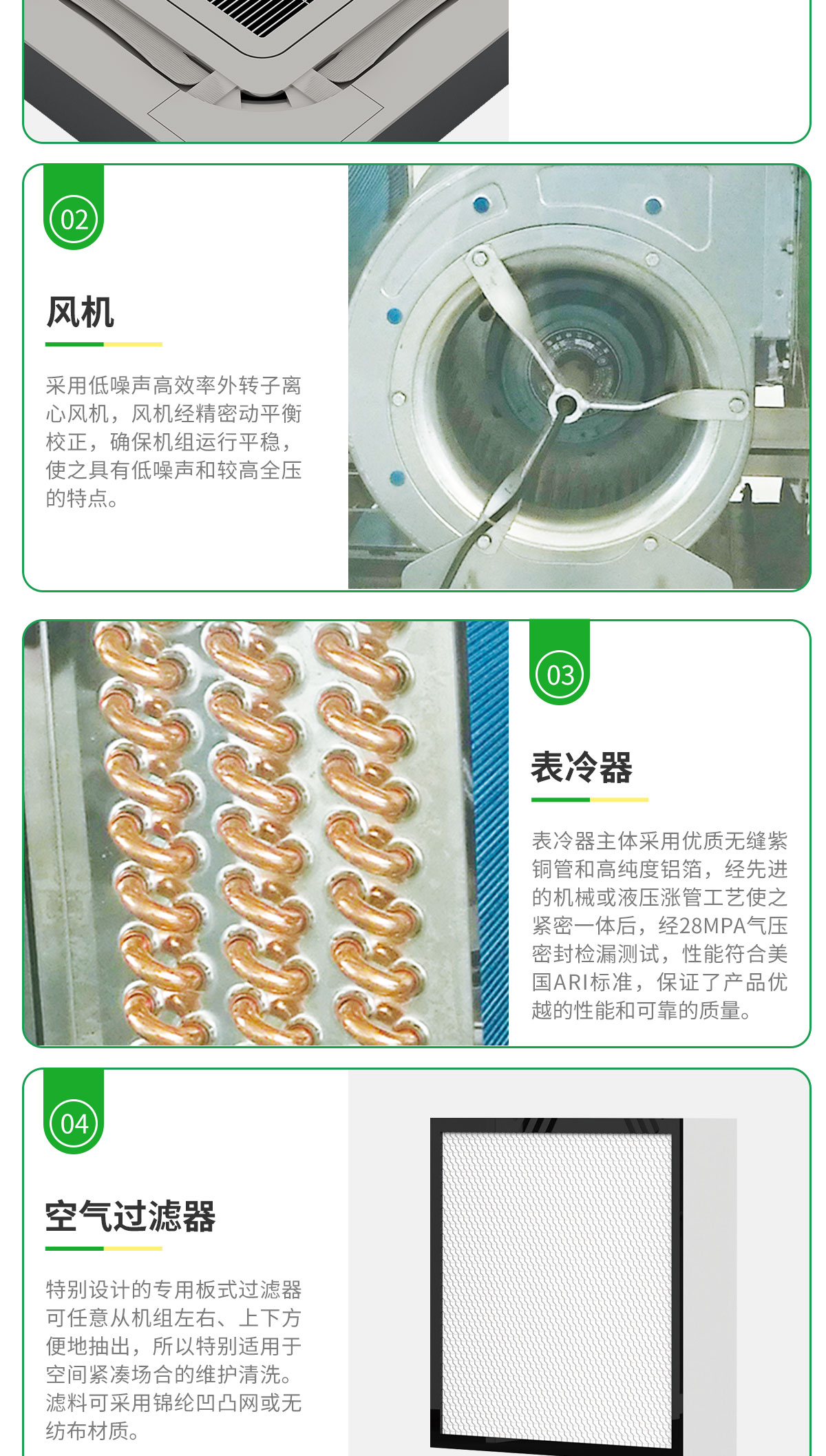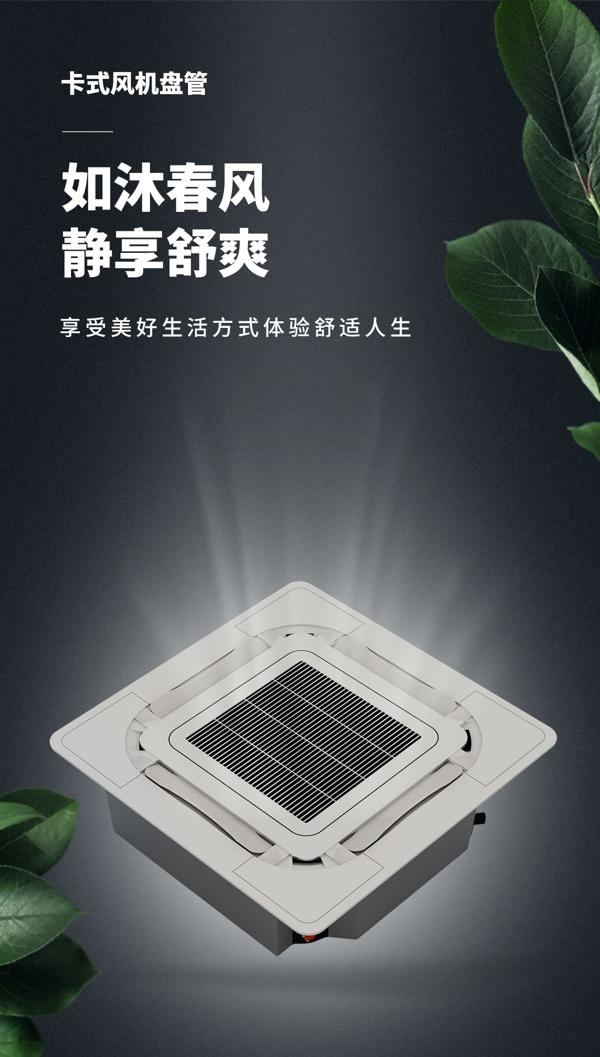 360°廣角送風,氣流均勻送達房間各個角落,出風柔和,舒適度更高 特有高、中、低3檔風速設計,針對不同安裝高度,可設定相應的送風檔,輕松滿足不同安裝高度的送風需求 卡式風機盤管預留新風引入接口,可用導管將室外新風引入、經(jīng)由全新的長效過濾網(wǎng),令室內(nèi)空氣清新健康更持久
